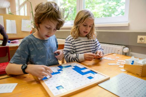 Das von Maria Montessori entwickelte Material für Mathematik zeichnet sich dadurch aus, dass dem jungen Menschen durch Tun und (Be-)Greifen schrittweise Wege vom konkreten Material hin zur Abstraktion eröffnet werden.